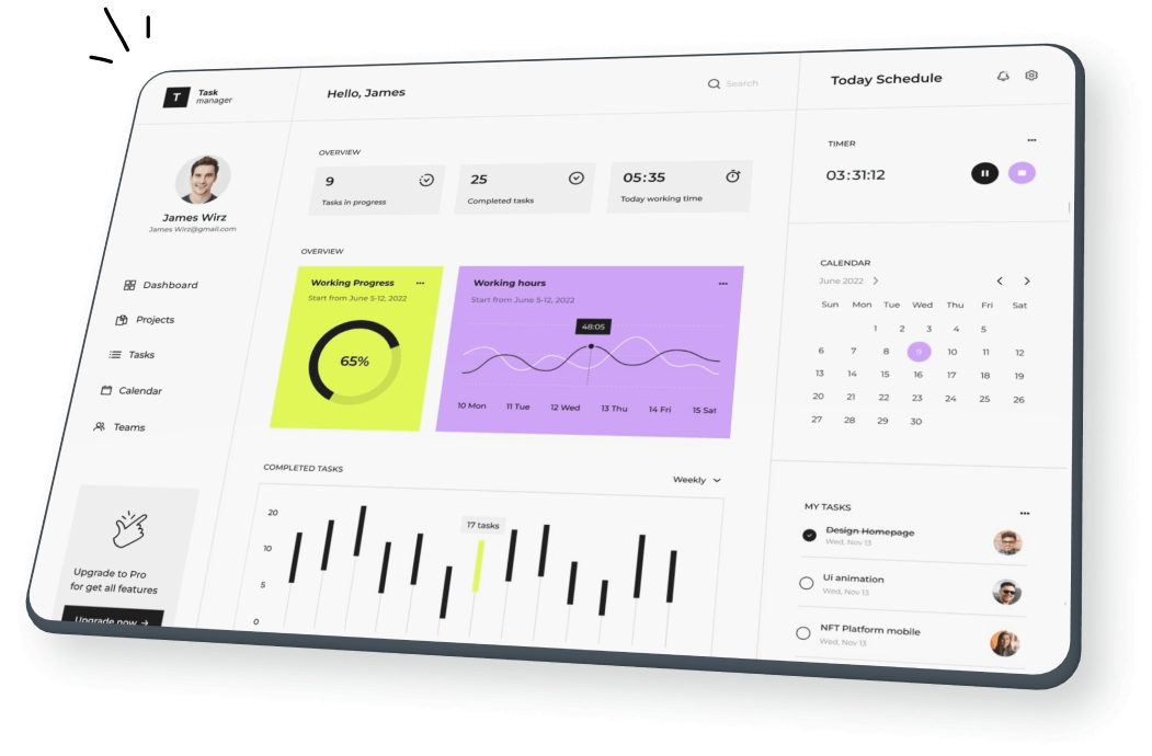 - Takvim ve liste görünümleriyle zaman planlamasını kolaylaştırın